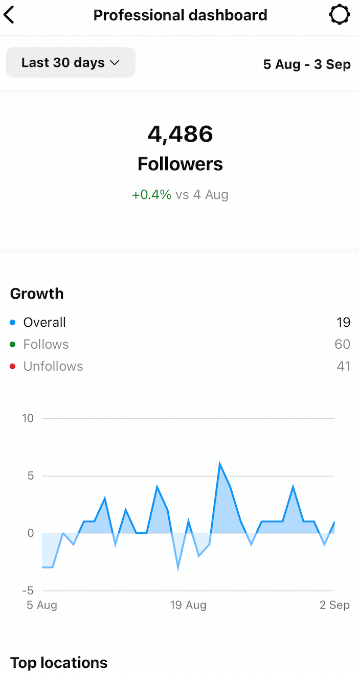 You can see your overall growth, including the number of people who followed and unfollowed you in a specific period of time, then compare it to the previous period.