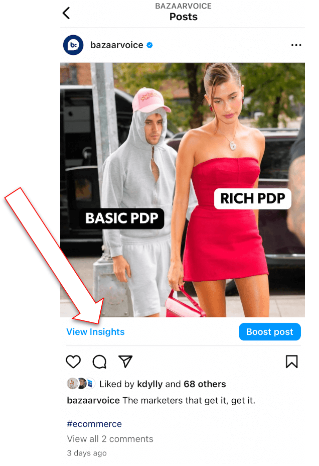 If you want to take a look at how a particular post has performed, you can easily do this by selecting the post and clicking “View insights,” as illustrated below.