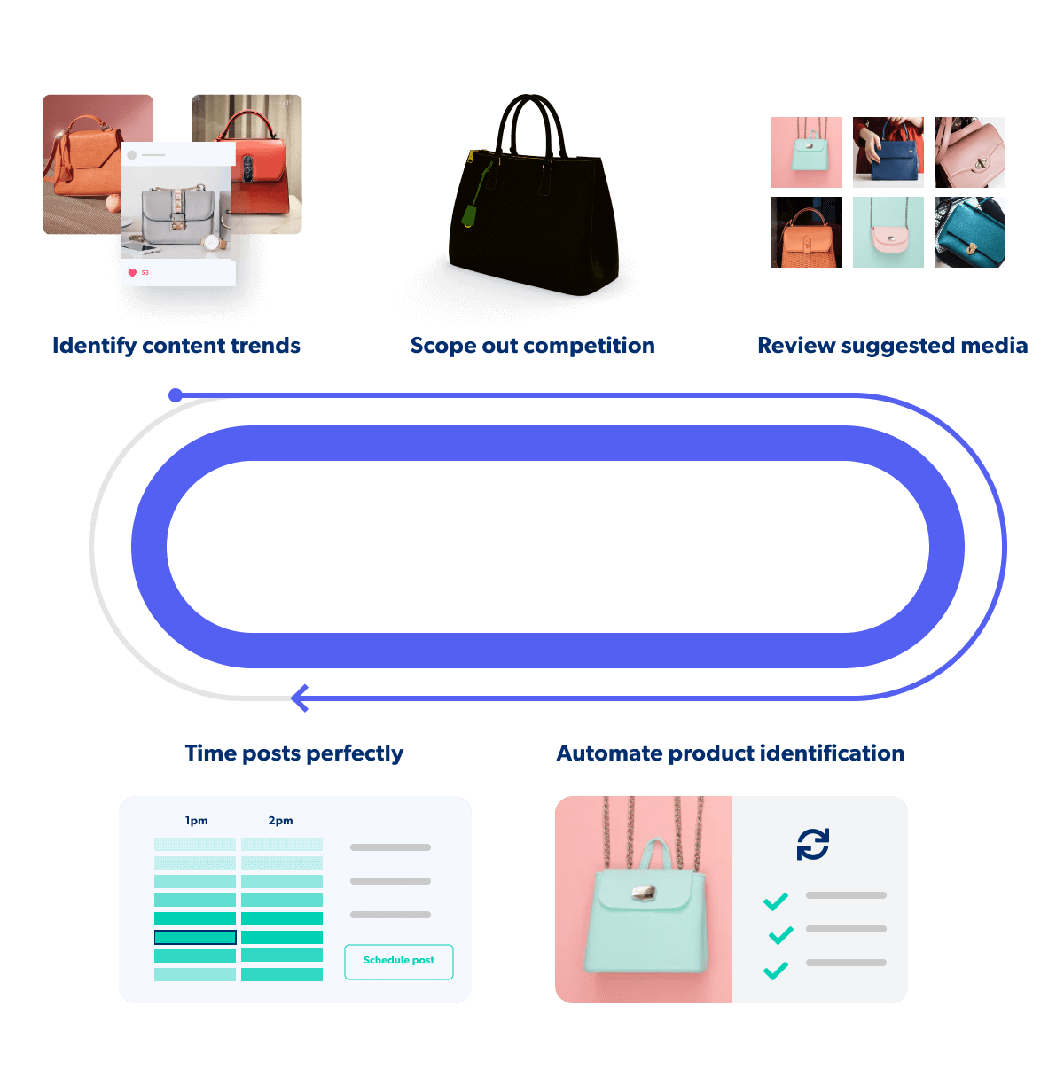 - Easily schedule and publish shoppable content across social sites with universal product tagging all in one place