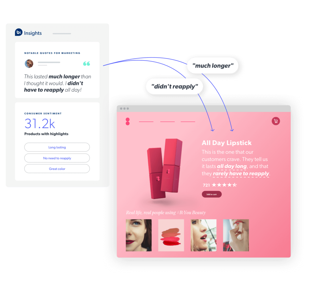 Imagine page one ranking in search mere days after your new product pages go live. UGC doesn’t just help you stand out on a product page or social, it can boost your SEO, too. Bazaarvoice uses SEO technology that ensures search engines find and index all customer reviews on your website. After implementing Bazaarvoice’s SEO solution, LeTAO reported that users who visited the site from Bazaarvoice SEO were 190% more likely to buy. The more keyword-rich reviews, the better.
