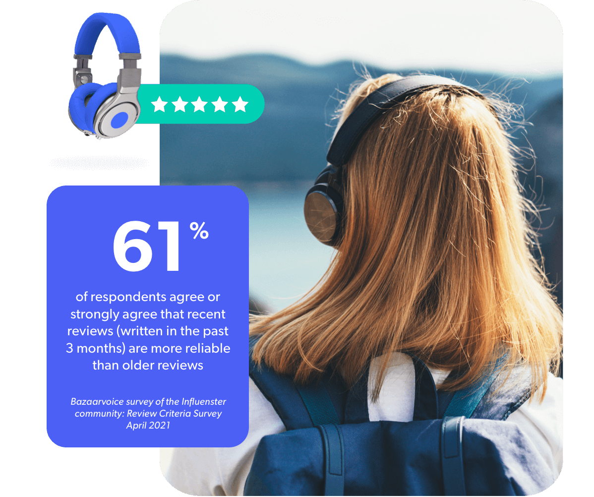 Your core products’ UGC is only as good as its most recent content. When Bazaarvoice surveyed more than 30,000 global shoppers, 61% of respondents strongly agree that reviews written in the past three months are more reliable than older reviews. It’s not just written reviews, either — if your core products don’t have recent advocacy on product pages or social feeds, shoppers question whether it is a good product or if it’s gone out of vogue. Don’t let your core products become yesterday’s news. Secure a continuous stream of content to show your product is still relevant.
