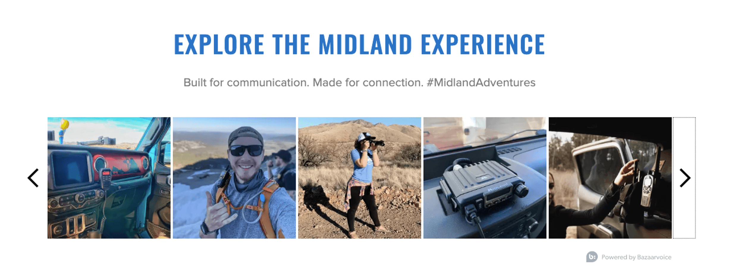 With Bazaarvoice Galleries, Ratings & Reviews, and other Bazaarvoice products, Midland Radio is poised to become a leader in the two-way radio space. The company sells the No. 1 consumer walkie-talkie and weather radio in the country. Midland Radio is also the official communications sponsor of Jeep Jamboree, a big event that happens three to four times a year. New retail partnerships with large stores like Bass Pro Shops and Dick’s Sporting Goods also help increase brand visibility.