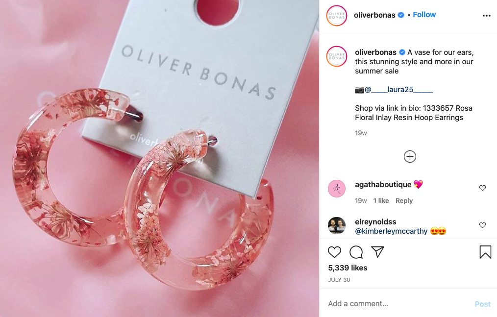 The Oliver Bonas team recently conducted analysis to determine which types of images perform best across certain categories on social media. The data proved that UGC style content often outperformed other imagery, especially in the fashion, accessories and jewellery categories.