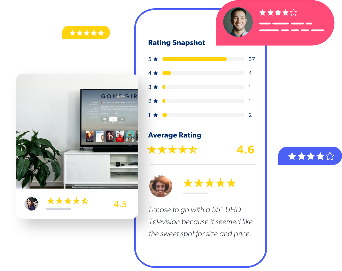 You’ve worked hard to get browsers to your page. Now you need to make sure you’re keeping them there as long as possible. Product pages packed full of insightful reviews and sumptuous visual content increase time spent on page. Higher dwell times lead to increased propensity to purchase. And it’s easy to inject life into your product pages – our Ratings & Reviews, Questions & Answers, always-on content, and social media tools have got you covered.