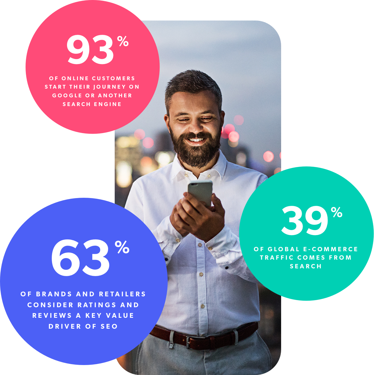 Launch new markets with confidence. Connect with shoppers in new regions by giving them the content they need to hit the buy button. We’ll power your pages by displaying ratings, reviews, questions and answers, and even stunning social content from your existing customers. We’ll then help you serve customers globally by letting them click to see the content in their own language. It’s what 73% of customers want.