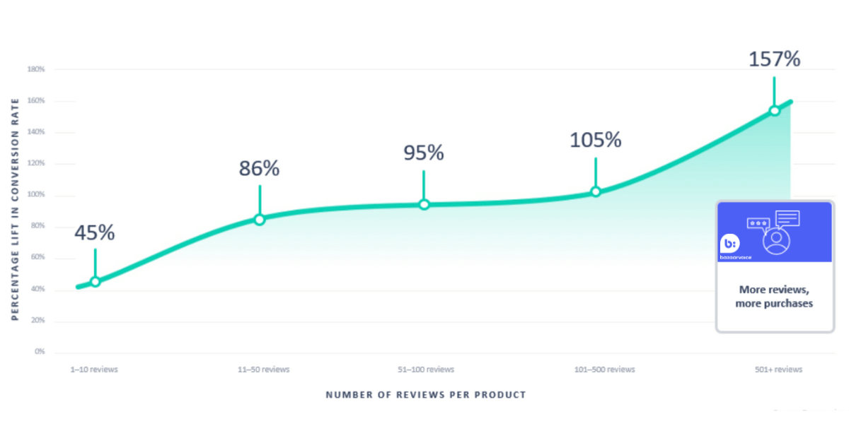 26. Having just 10 product reviews can lift conversion rate by 45% (Bazaarvoice research, 2023)