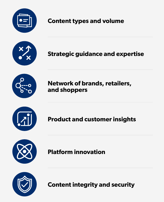 If the above stats have convinced you to combine your branded efforts with user-generated content, the first step is choosing the right UGC provider to work with. There’s six core areas you need to look at when evaluating a potential partner: