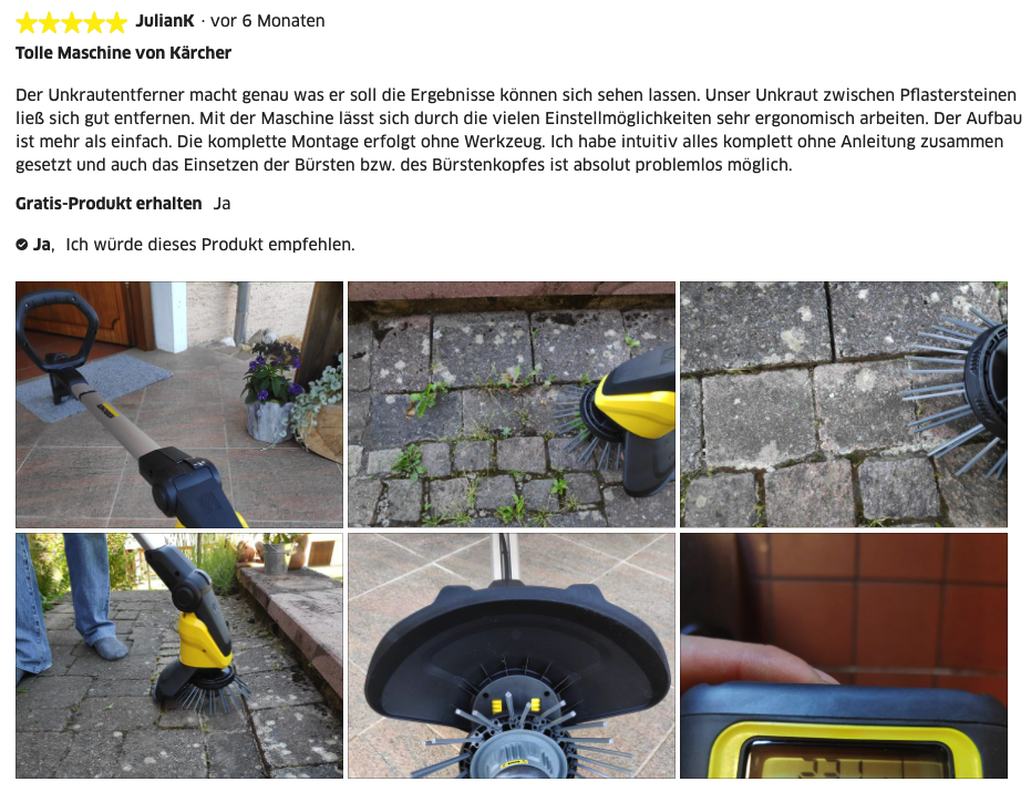“In some countries, Kärcher is mostly known for pressure washers. But our product range is so much more wide,” said Wiredu. “For example, we recently introduced the new category called electric weed remover. These were completely unique and unknown to consumers, so shoppers had nothing to compare them to. That’s why reviews played such an important role in getting consumers confident in the products.”