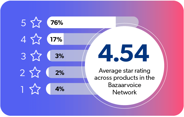 Ne touchez pas à l’authenticité. Des contenus de qualité, en particulier lorsqu’ils proviennent de véritables personnes auxquelles chacun peut s’identifier, créent un climat de confiance, renforcent la fidélisation et augmentent le taux de conversion, et ce à grande échelle, avec une efficacité presque inimaginable. Les faux avis ne sont même pas nécessaires. La bonne nouvelle, c’est que les avis sincères sont en moyenne extrêmement positifs. Le nombre moyen d’étoiles sur le réseau Bazaarvoice est de 4,546, 76 % ayant obtenu une note de 5 étoiles7. Privilégiez un programme d’avis authentique : vous en récolterez les bénéfices commerciaux.