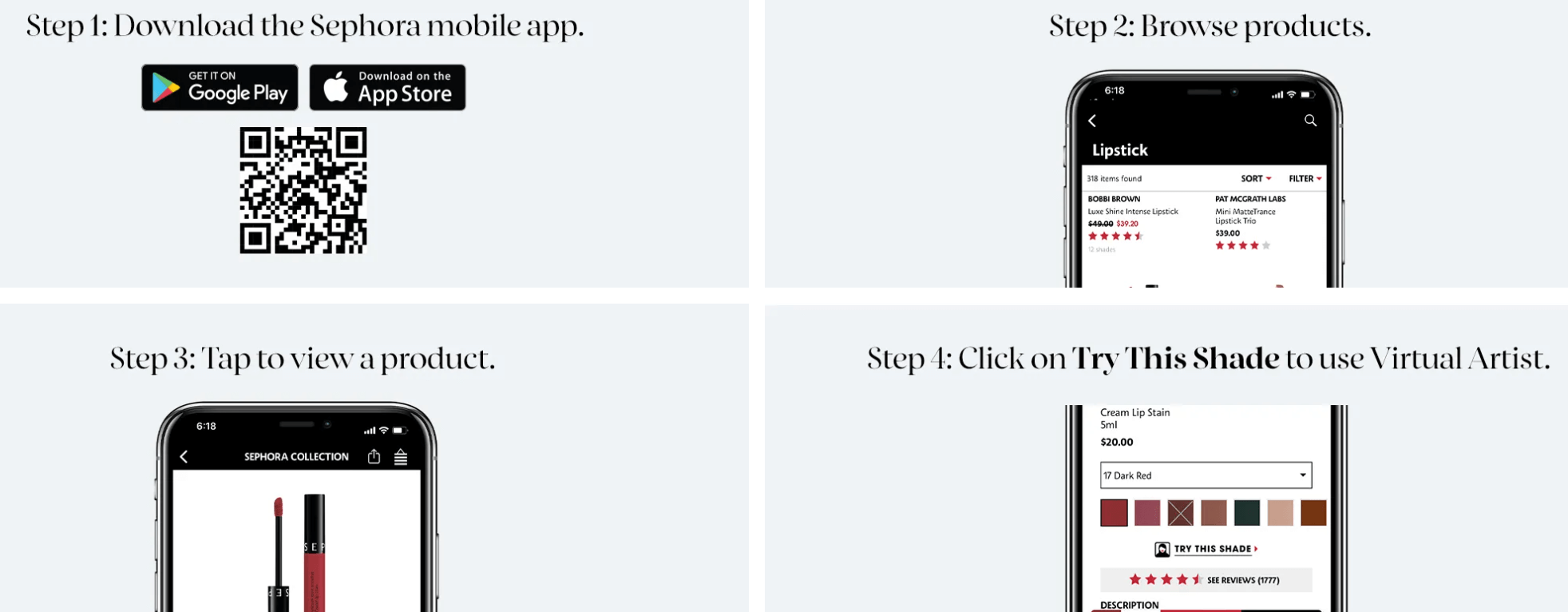 Sephora is one brand that has already found success with AR through its Virtual Artist tool that lets shoppers find the perfect eyeshadow shade. The mobile app uses AR and facial recognition to enable shoppers to compare products and try them on before purchasing.