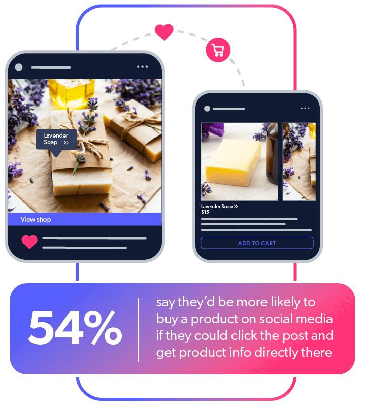 Instagram has made it incredibly easy to purchase a product straight from the accounts users trust the most. According to our research, 69% of consumers have been inspired by social media to make a purchase and 54% would be more likely to buy a product on social media if they could purchase directly.