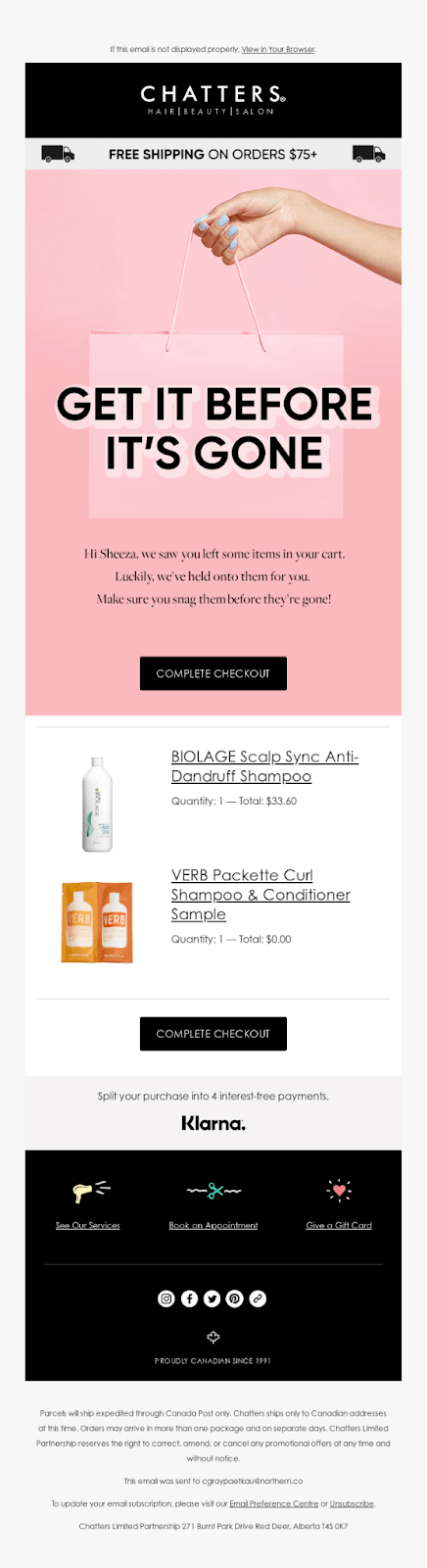 To maximize this strategy’s efficiency, strike while the iron’s hot, and offer incentives. Send the first reminder within a few hours of the cart being abandoned, and include discounts or free shipping to make the deal irresistible.