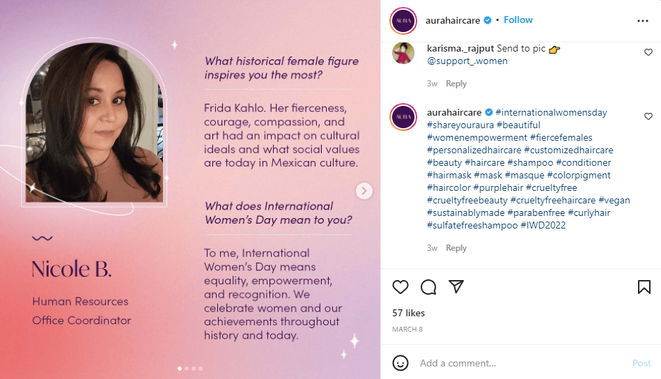 Beauty brand Aura relied heavily on its employee advocacy program as part of its initial launch, and throughout the month of March to celebrate Women’s History Month.