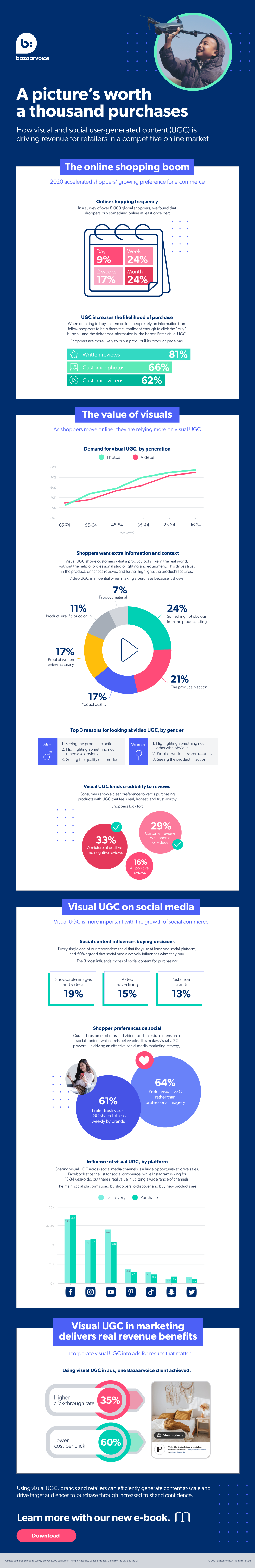 Visual and social user-generated content (UGC) play a big role in driving e-commerce sales. We wanted to explore what consumers want out of that type of content and how they are utilizing it, so we surveyed over 8,000 across six different markets.