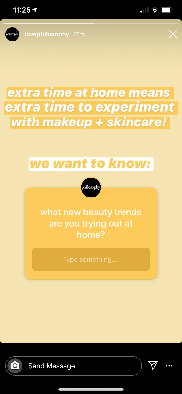 In a recent Instagram story, skincare brand Philosophy asked its followers what beauty trends they’re experimenting with, a question that will no doubt provide the Philosophy team with useful insights about its audience and spark future product ideas.