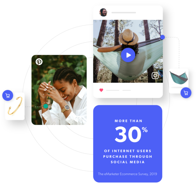 Les réseaux sociaux font vendre, c'est un fait. Créez une expérience utilisateur exceptionnelle et transformez les réseaux sociaux en vitrines attractives. Faites appel aux influenceurs et exploitez les CGU comme jamais. Optimisez l'e-commerce pour la découverte de produits avec une nouvelle génération d'outils de marketing social. Et accédez aux 42 % de consommateurs en ligne qui utilisent les réseaux sociaux pour rechercher des produits. De nos jours, les gens s'attendent à acheter partout en ligne. Exploitons cette tendance.