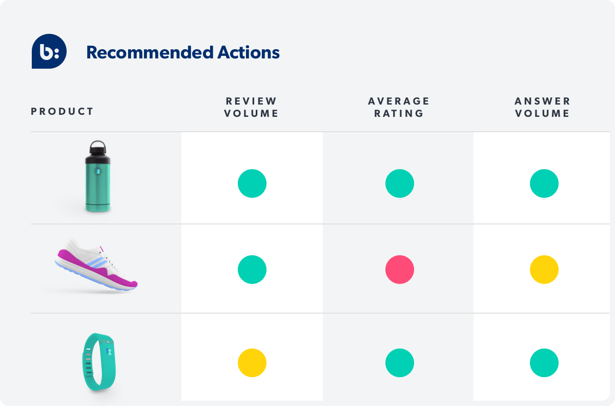 Encouragez vos marques partenaires à optimiser leurs pages produits sur votre réseau. Aidez vos marques partenaires à optimiser leurs ventes grâce à l'analyse des avis des consommateurs. Vous définissez vos critères en matière de volume, de qualité et de récence des notes et des avis afin d'assurer l'excellence de vos produits. Vous pouvez également identifier les faiblesses en termes de couverture d'avis produits et utiliser nos solutions pour optimiser les pages présentant un trafic élevé mais un taux de conversion faible. Ils y gagnent. Vous y gagnez. Tout le monde y gagne.