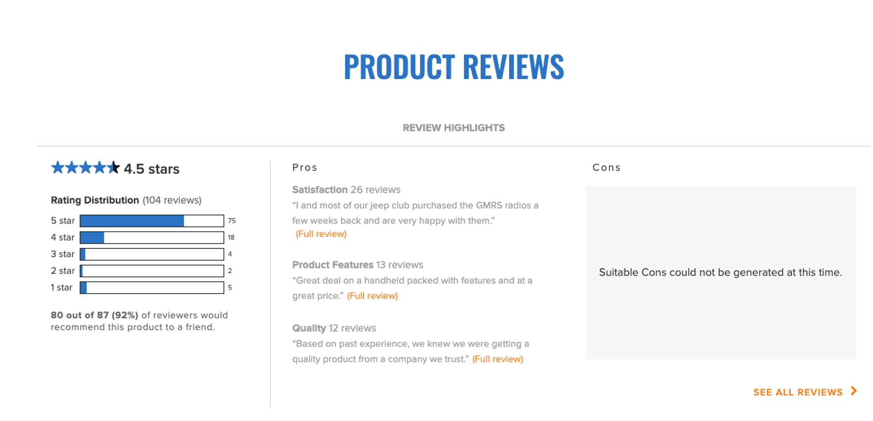More reviews and UGC helped Midland Radio increase revenue, improve sentiment, and instill more confidence in customers when purchasing one of its products.