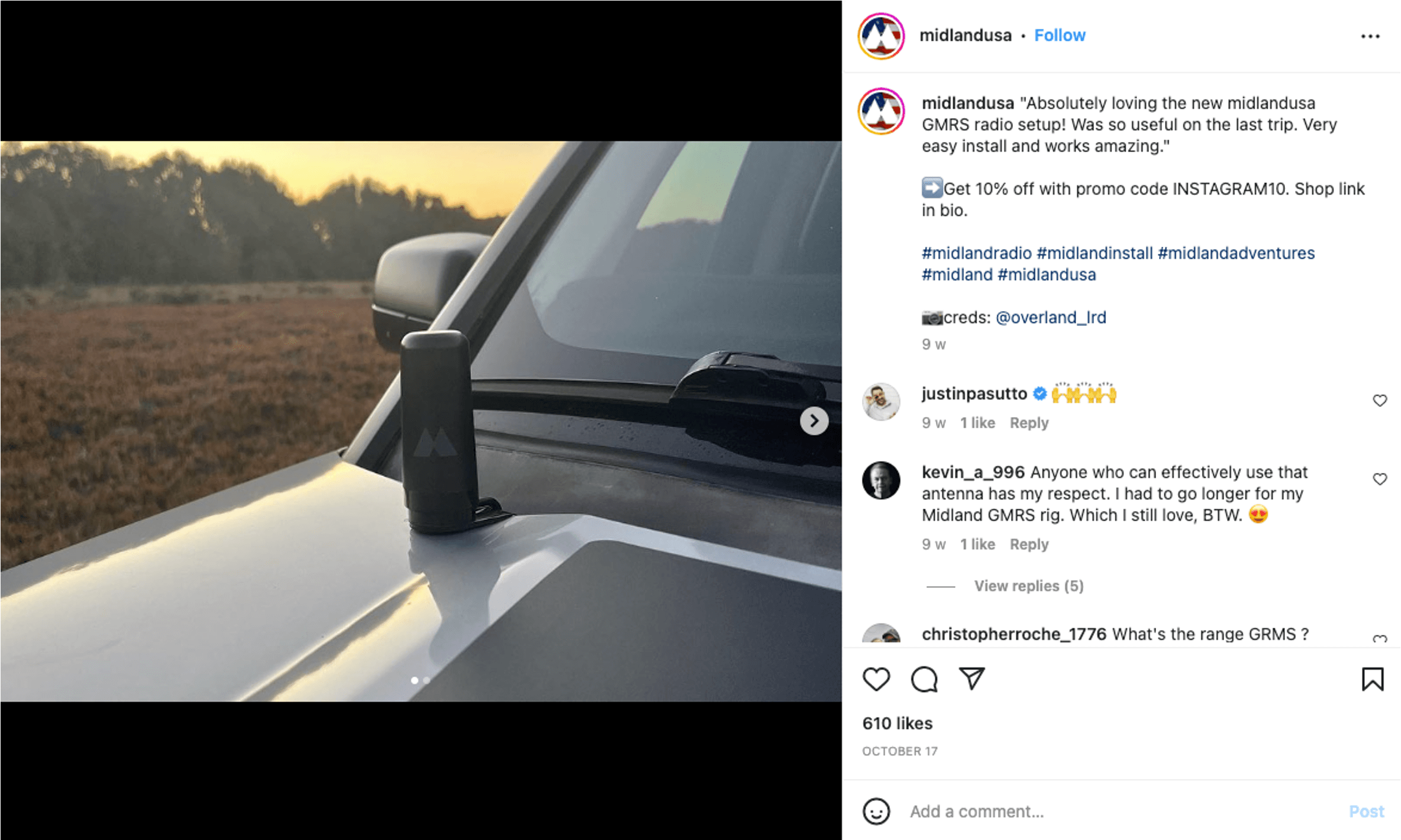 With Bazaarvoice’s Social Commerce, Midland Radio also benefits from tools like Reveal, Showroom, and Like2Buy, which it uses to increase sales on the company’s Instagram page.