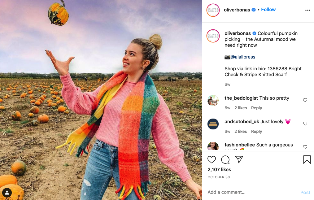 The Oliver Bonas team recently conducted analysis to determine which types of images perform best across certain categories on social media. The data proved that UGC style content often outperformed other imagery, especially in the fashion, accessories and jewellery categories.