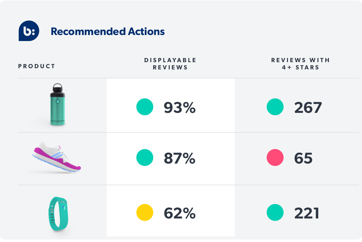 La qualité des CGU de vos produits phares dépend de leurs contenus les plus récents. Une enquête menée par Bazaarvoice auprès de 30 000 consommateurs du monde entier a révélé que 61 % des consommateurs perçoivent les avis datés de moins de trois mois comme plus fiables que les avis plus anciens. Il ne s'agit pas seulement des avis écrits : si vos produits phares n'ont pas de recommandations récentes sur leur page ou sur les réseaux sociaux, les consommateurs risquent de les percevoir comme obsolètes. Ne laissez pas vos produits phares devenir des produits du passé. Assurez un flux continu de contenus pour faire preuve de leur pertinence.