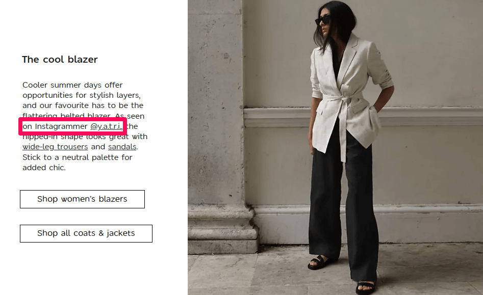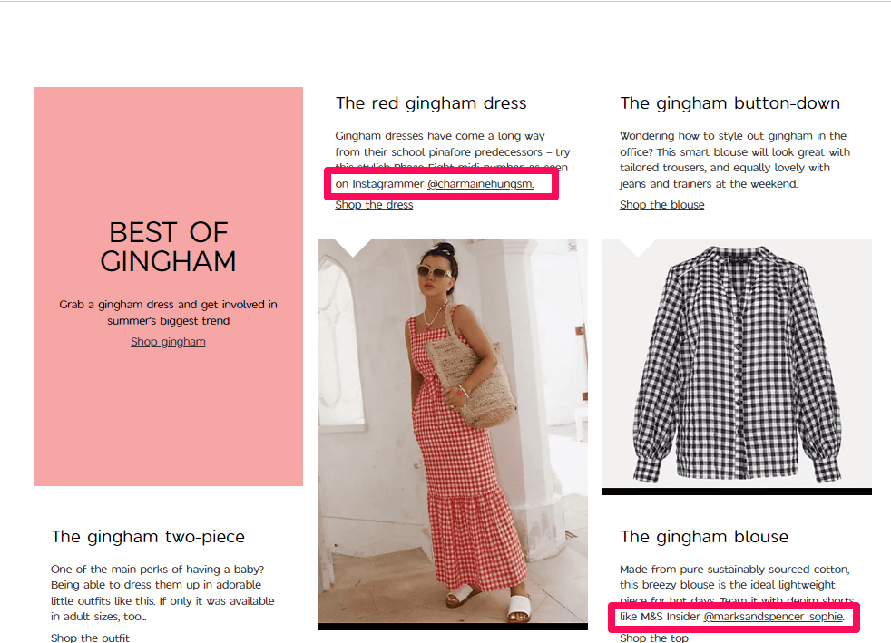 The Marks and Spencer brand also created a strong Instagram presence by posting trending styles on its main website, then tagging the influencers who originally styled and posted the image.