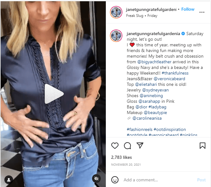 Lesser-known brands can gain great exposure from influencers who pair pieces from multiple brands, like this post from @janetgunngratefulgardenia.