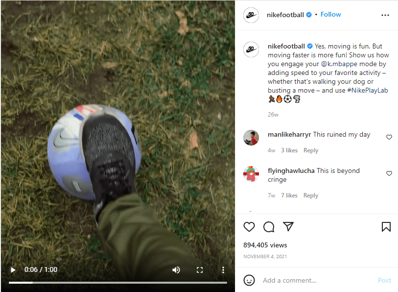 Celebrities may even help you create a new co-branded product, like Nike’s co-branded sneaker with LeBron James and Kylian Mbappé. The brand posted and tagged the celebrities on social media with videos of kids playing sports while wearing the shoes.