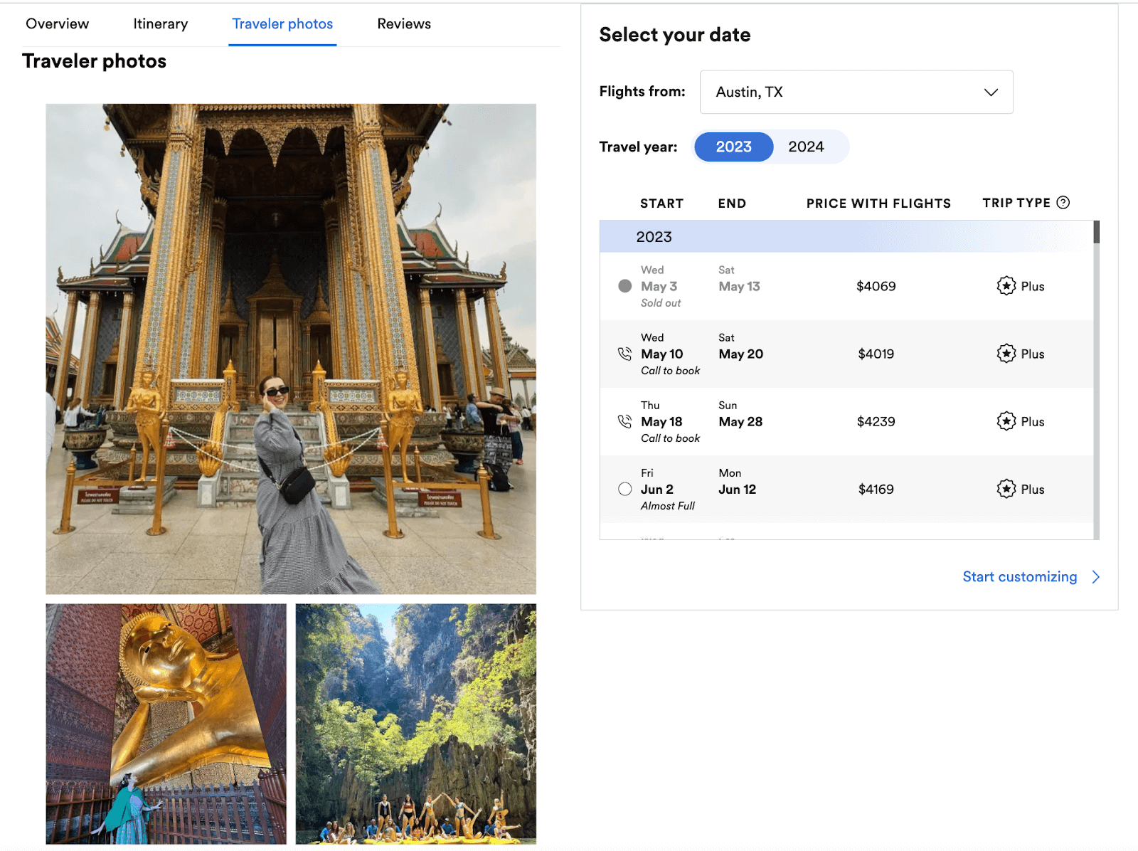 While browsing for your next vacation, you’re met with real-life examples of experiences and sights on the trip information pages, category pages, and even a full-page Gallery of TikTok content. This helps you choose the best trip for you, and also conveniently serves as inspiration for the poses you’re gonna hit when your partner is taking pics for the ‘Gram.