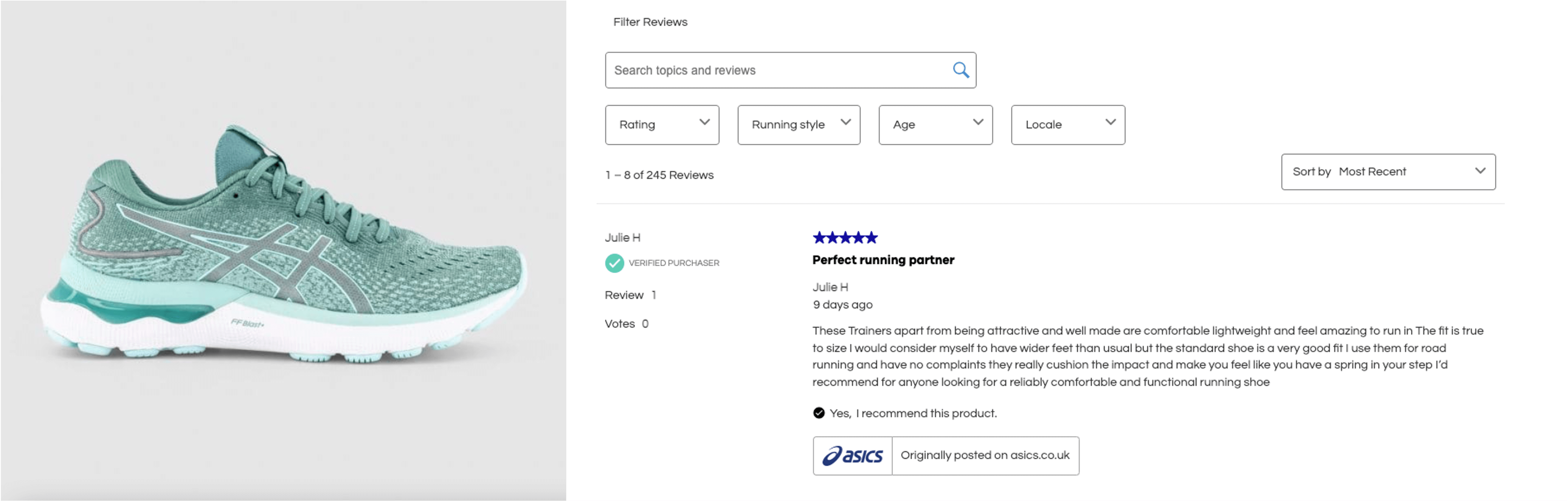 “We want to keep the visitors on our website and make sure they find all the answers they need straight on the website without having to go somewhere else,” said Head of e-commerce and CRM Archie Pihier. “Not only to give them trust in the quality of the products but also to make sure they get the product they actually need based on their usage. The Athlete’s Foot is all about providing the right FIT; Providing qualitative product reviews contributes to that, especially for a customer not able to visit a physical store.”