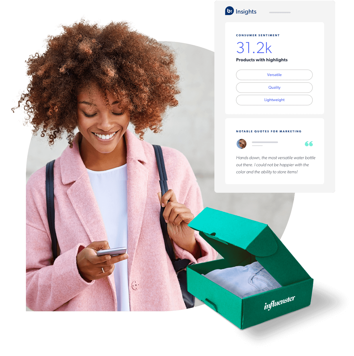 Launch smarter. No one wants to buy a new product until they know people like it. Collect reviews and feedback from your community before you launch with a sampling campaign. Meet shoppers where they are — whether it be in-store, on social media, or on your website — and show up armed with reviews, photos, and videos. When Burt’s Bees announced its new cosmetics line, it launched with 300+ reviews and a glowing 4.48-star rating. Build up and sustain excitement across social media with ample UGC on day one.