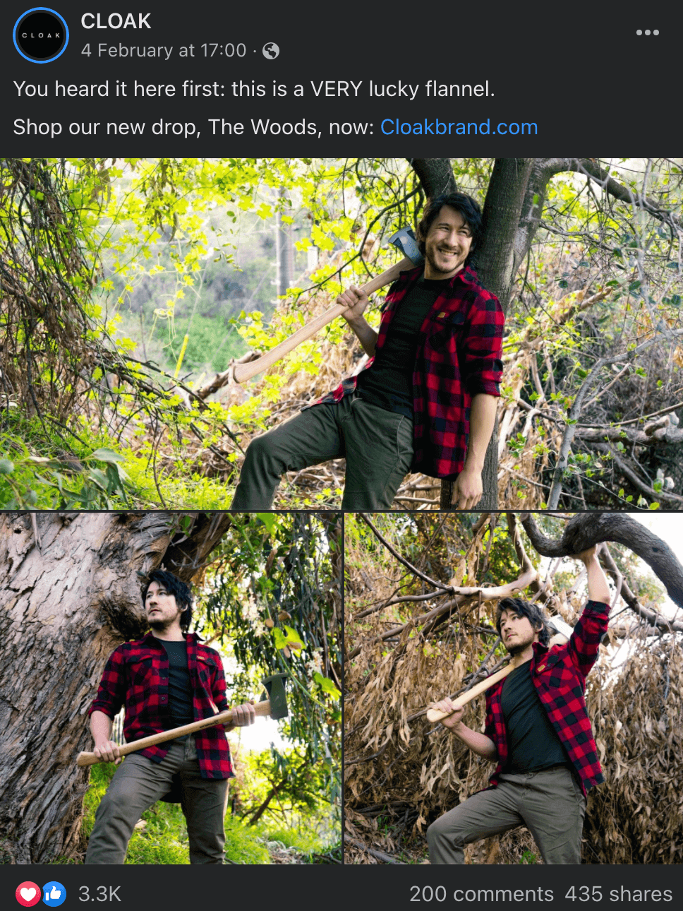 The niche clothing brand CLOAK knows its followers. The brand consistently posts unique and engaging content that customers are excited to share.