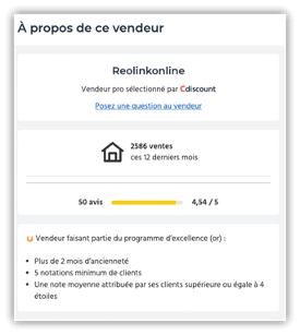 Ces avis syndiqués représentent 25% des avis sur le site et sont clairement identifiables. Ils offrent la possibilité de garantir un taux de couverture avis/produits plus important à Cdiscount et garantissent davantage de visibilité aux marques.