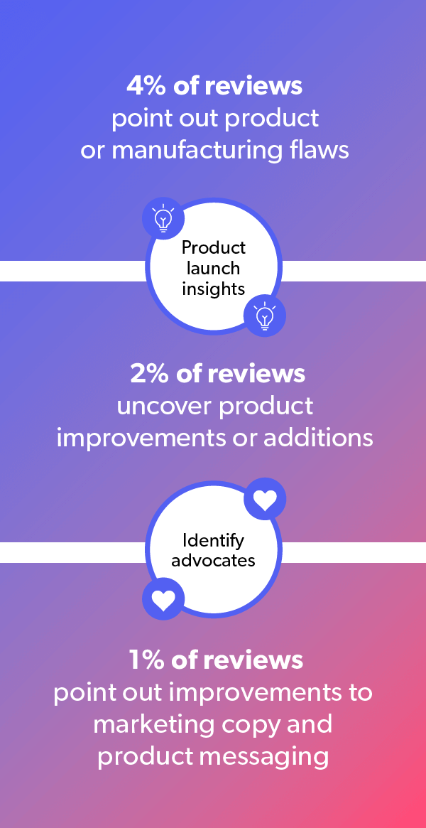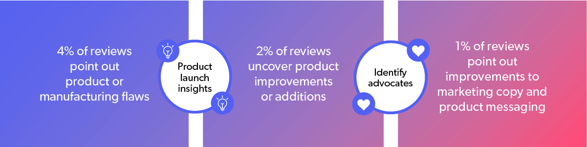 Nous avons d’innombrables exemples d’améliorations apportées par les marques et les distributeurs à leurs produits et processus suite aux commentaires qu’ils ont reçus dans le cadre des CGU. En effet, 72 % de nos clients4 utilisent les CGU pour améliorer leur service client, 66 % pour optimiser leurs produits et 50 % pour renforcer leurs messages et stratégies marketing.