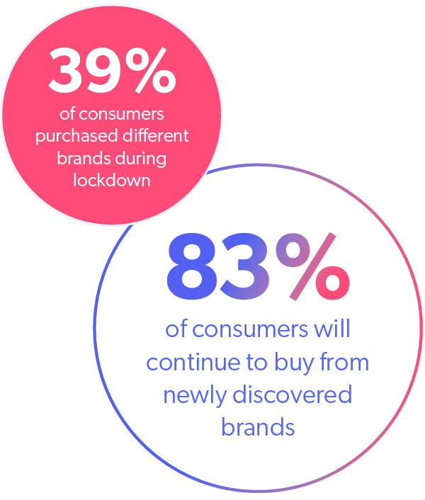 Pendant le confinement, plus d’un tiers (39 %) des personnes interrogées dans le monde ont acheté des produits de marques différentes de celles qu’elles choisissaient habituellement, ainsi que des produits de marques dont elles n’avaient jamais entendu parler auparavant. Et 83 % des consommateurs continueront à acheter auprès de marques récemment découvertes.