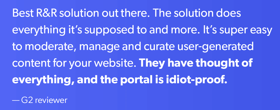 Allowing customers the flexibility to choose the type of review they prefer — text, video, or picture — also simplifies and encourages submissions, giving you a diverse library of customer feedback to use as needed.