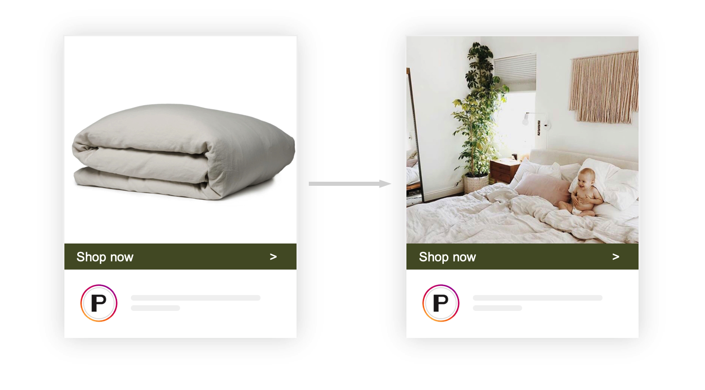 Incorporate lifestyle imagery from customers who tag Parachute in their organic posts on social media and create retargeting ads that show consumers using Parachute products in everyday life.