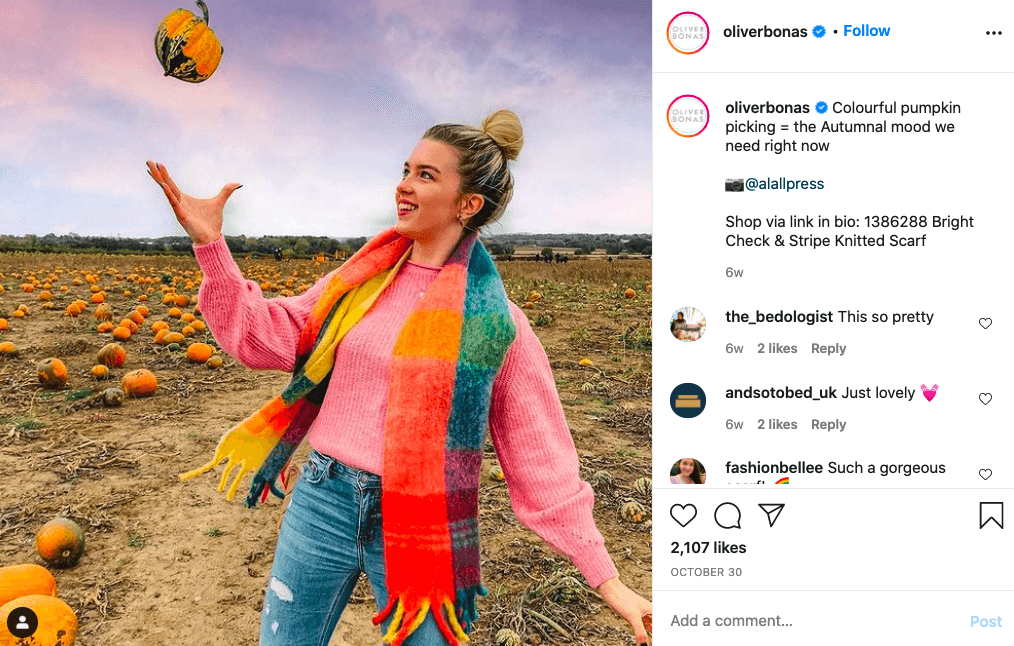 Instead of relying on professional photos, lifestyle brand Oliver Bonas empowers shoppers with shoppable visual and social UGC — which they feature on their homepage, product pages, social media, and in their marketing. This strategy has resulted in a 176% increase in time on site, a 188% jump in conversions, and a 26% boost in average order value.